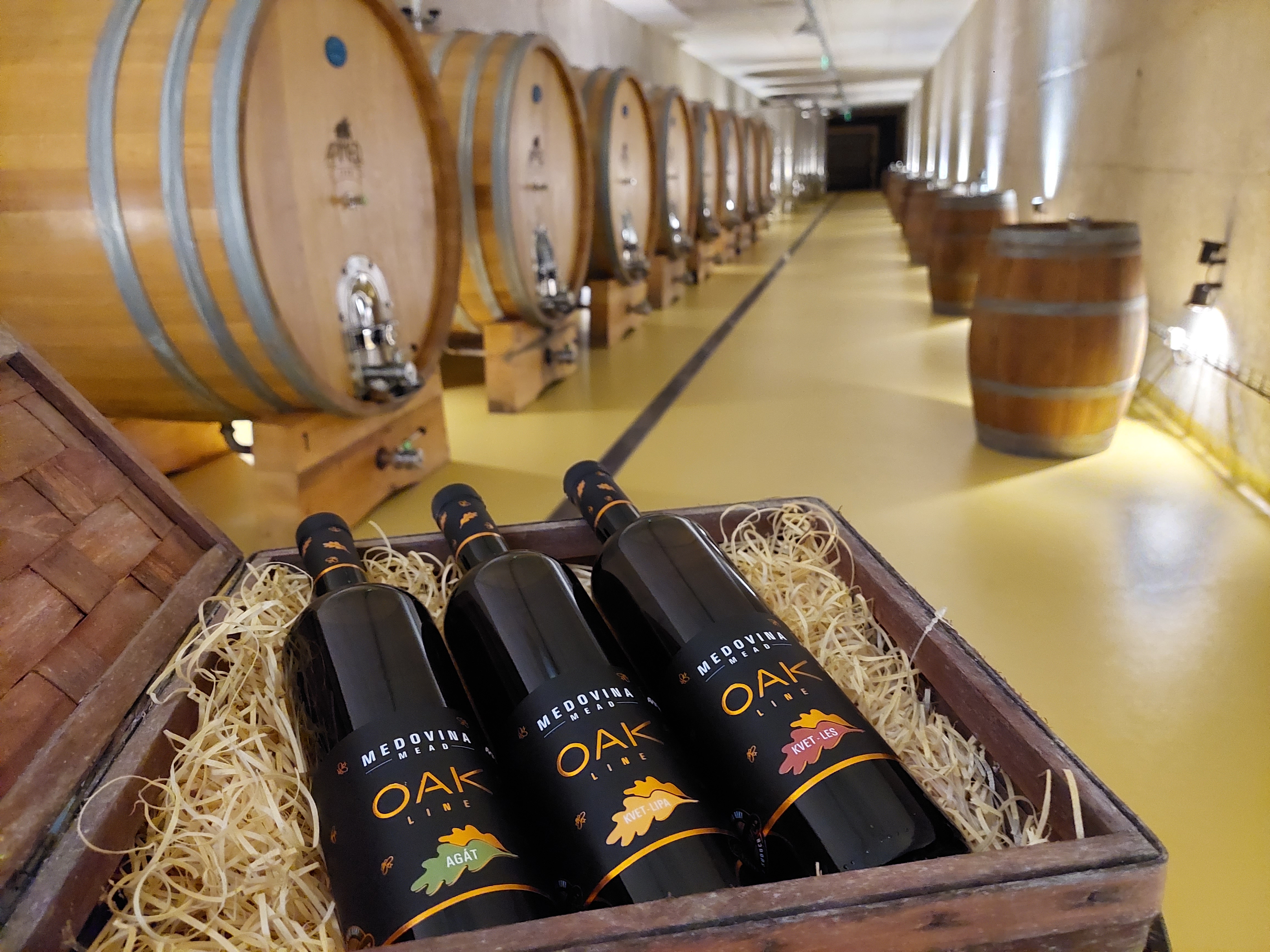 Medovina "OAK LINE" je limitovaná edícia prémiových medovín vyrobených z vybraných druhov slovenského medu, zušľachtených dlhodobým zrením v 2000l dubových sudoch počas doby 2 rokov.